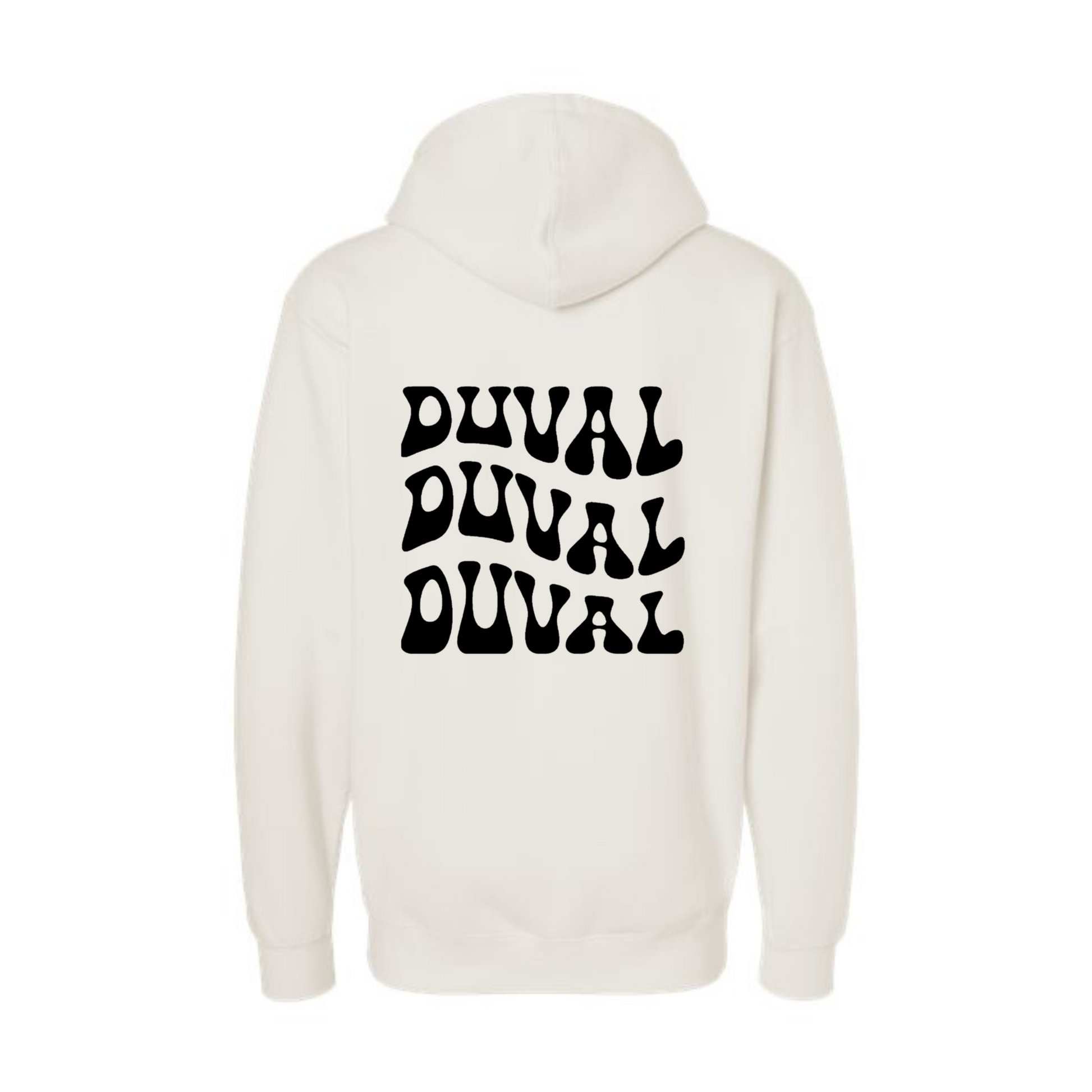 Thanks to Stadium Patch, you can let the whole world know where you're coming from. If you live in most places and tell someone which county you're from, they're going to be confused. Tell someone you're from DUUUUUUVAAAAAL, though, and they know exactly what you're talking about. Now you can rep the County at home and on the road with our customizable DUVAL text hoodie.